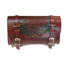 Leather Antique Brown Motorcycle Tool Bag - USA Made Cowhide Embossed Skull