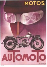 1930's French ART DECO AutoMoto motorcycle 9" X 12" repro advertising poster