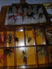 BOX #31 - ANTIQUE THE LOCH LEVENSHTEIN EYED FLY BOX WITH MINNOW FLIES