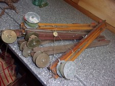 Hand Crafted Pair of Wooden Winding Reel Original Line Vintage Antique