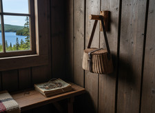 VERY Unusual Antique Adirondack Hand Woven Fishing Creel w/ Sunburst Woven Top