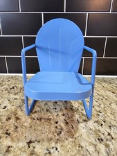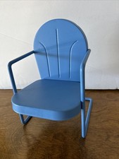 Vintage Metal Doll Lawn Chair Plant Stand Blue 7.5 inch 1950s Mid Century
