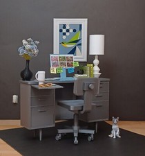 📝silver DESK & CHAIR mid-century mod DOLL FURNITURE office 1/6 SCALE for BARBIE