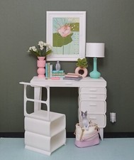 🧭 white DESK & CHAIR mid-century mod DOLL FURNITURE office 1/6 SCALE for BARBIE
