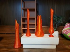 Miniature Swung Glass (Plastic) Vase Set - Orange - Barbie - MCM Vintage Retro