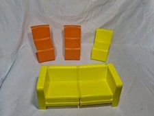 Lot 4 Vtg 1973 Barbie Plastic S Chair, Couch Mid Century Modern, Yellow Orange
