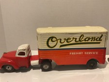 Vintage Japanese tin pressed Overland freight service truck and trailer 1950s