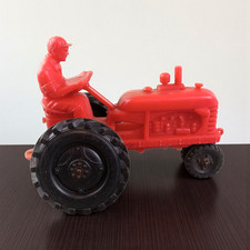 Vintage Plastic Red Farm Tractor with Driver Toy Home Decor