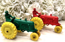 Pair of Vintage Toy Tractors-1950's Auburn Rubber Green & Red-with Farmer