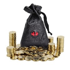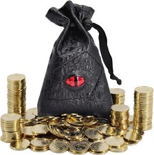 DND Fantasy Coins 50 Antique Gold Metal Treasure Tokens with Leather Pouch -
