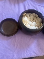 Go Stones Clam Shell White & Black Stones with Large Keyaki Go Bowl Antique