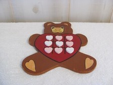 Vintage----Wooden---- Tic-Tac-Toe Game----Brown Teddy Bear with Hearts
