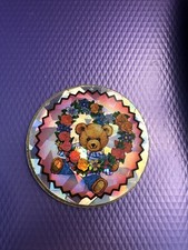 Pog Teddy Bear with Heart/ Roses 1990s Rare. Metal Vintage 🧸💙