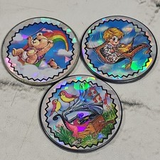 Vintage 90s Pogs Holographic Slammers Heavyweight Lot Of 3 Phonograph Teddy Bear