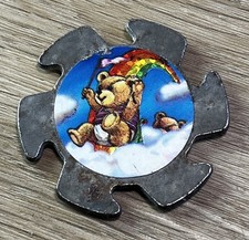 Vintage 1990's Teddy Bear Rainbow Metal Saw Blade Slammer POG Milk Cap Game