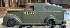 Vintage 1950s U.S. Army Medical Ambulance Toy Green Plastic Ideal No. I-1729