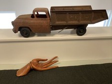 VINTAGE Metal Rustic TOY DUMP TRUCK Originally Red LARGE 19" I’M TERRIFIC!!!