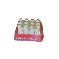 Vintage Fresh A Milk Miniature Toy Milk Bottles w Red Crate Carrier Retro