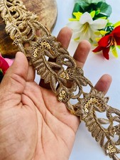 3 Inch Wide Antique Gold Handmade Zerdozi Trim: Embellished Border, 1 Yard