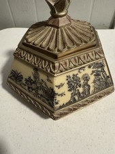 Vintage Hexagon Toile Trinket Box with Crystal Finial – 7” High