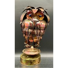 Vintage WORKING Brutalist Metal Owl Sculpture Rotating Music Box Made in Japan