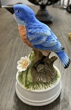 Robin Bird with Flowers Music Box Porcelain Vintage