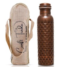 34 Oz 100% Pure Copper Water Bottle Leak-Proof BPA-Free with Jute Carry Case