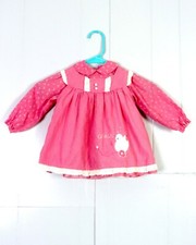 vtg 80s pink mauve Tiny Floral /Dot pattern 2 Pc Dress Pinafore Duck Toy 24 Mos.