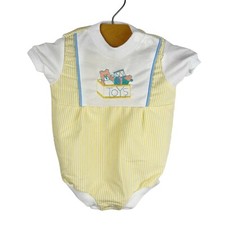 Vintage Obion Company Yellow Embroidered Toy Box Seersucker One Piece Romper