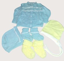 Antique Baby Knit Clothing Blue Sweater Booties Hats Yellow Hat Dolls NB