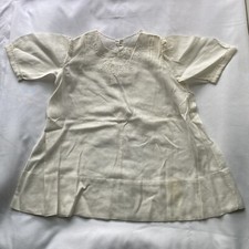 Vintage Handmade Baby Dress Muslin Cotton Off White Embroidered Antique 17” L