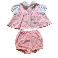 Vintage Pinafore Top & Bloomers Set Kids Pink Good Gingham Embroidery SIZE 6-9M