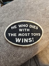 Vintage "He Who Dies With The Most Toys Wins!" Patch