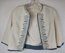 Authentic Mid-Century Moygashel Irish Linen Jacket Crop Bolero Embroidery...