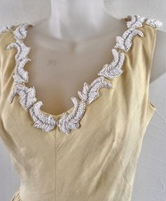 Vintage Jean Lutece mid century beaded champagne shift dress SZ Small Hong Kong