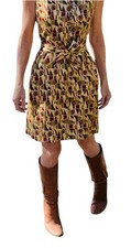 Vintage 1960s Mid Century Novelty Pop Art Button Belt Printed Shift Dress AS IS