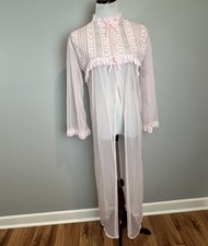 Vintage Bernette Peignoir Pink Sheer Robe Size Medium Mid Century