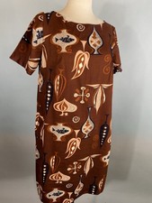 1960S Vintage Mid-Century Modern Abstract Mod Shift Dress Volup Cotton Brown