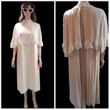 True VTG Mid-century 1960s Ivory Chiffon Lace Dress Matching Capelet Mod Unique