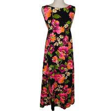 Ui- Maikai Vtg Maxi Dress Hawaiian Retro Mid Century 50s 60s floral black pink