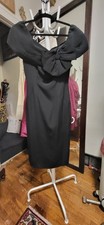 Vintage Phoenix Film Noir Black Crepe Portrait Neck & Bow Wiggle Party Dress 7/8