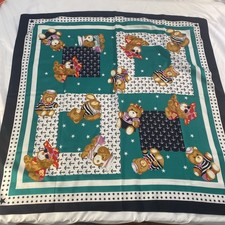 Vintage 100% Silk Teddy Bear Handkerchief Scarf Blue Red Bears Hats (A12)