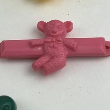 VTG Retro Plastic Purple Teal White Hair Barrettes Clips Accessories Teddy Bear
