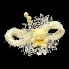 Teddy Bear Hair Tie True Vintage 80s Flocked Beige Off White Grunge