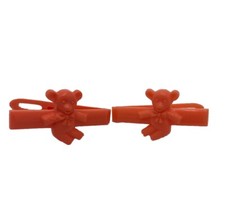 Vintage Hair Clips Barrettes Lot Of 6 Matching Pair Teddy Bears Tortoise Red