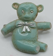 Vintage 1950s Ceramic Teddy Bear Hair Clip Teal With Gold and Silver Tone