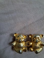 QE05110 VERY COOL VINTAGE 1970s CUT-OUT **TEDDY BEARS** GOLDTONE BELT BUCKLE