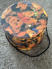 Vintage Cardboard Teddy Bear Hat Box With Rope Handle 9.5” Diameter