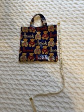 Vintage Harrods Teddy Bear London Small Tote Bag 7.5” By 7.5” PVC Coated Cotton