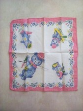 Vintage Childs Handkerchief Teddy Bear Cub Shopping Hankie 1950s Cottagecore